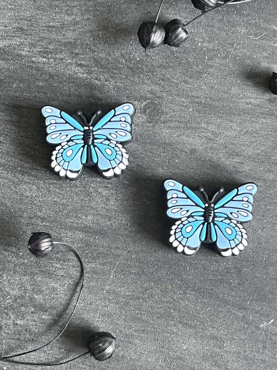 Maschen-/Nadel-Stopper – 1 Set mit 2 Stoppern – Schmetterling blau